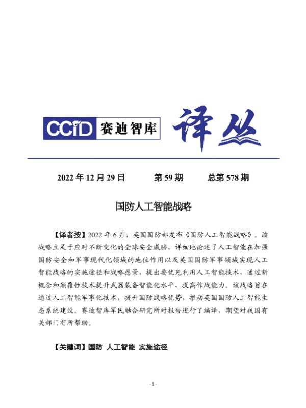 【英国国防部】【202206】国防人工智能战略-17页