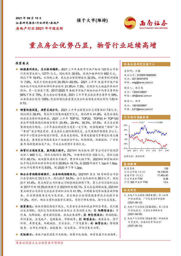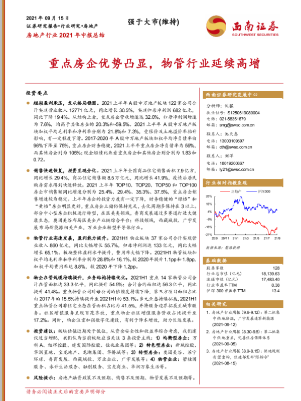 【西南证券】【20210915】房地产行业2021年中报总结:重点房企优势凸显,物管行业延续高增-28页
