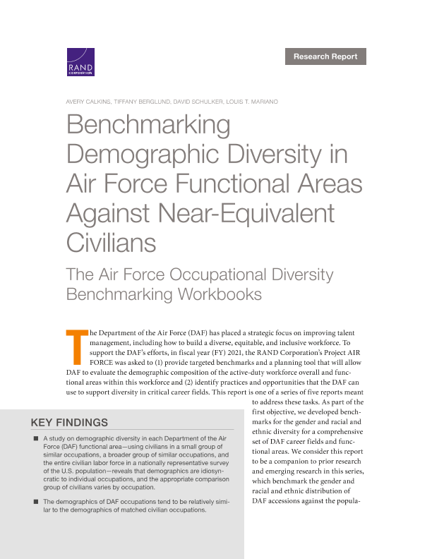 【RAND Corporation】【20230201】将空军职能领域的人口多样性与接近同等水平的平民进行比较-空军职业多样性基准工作手册-43页