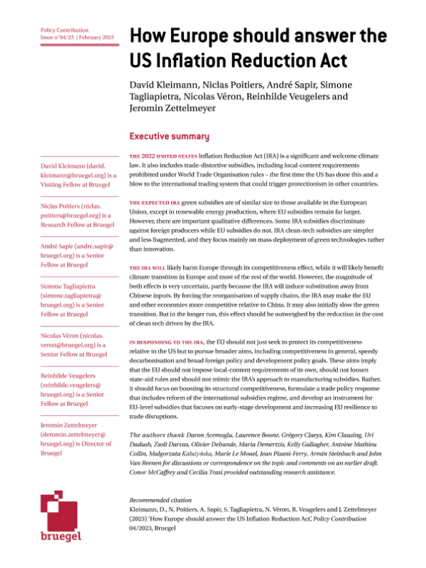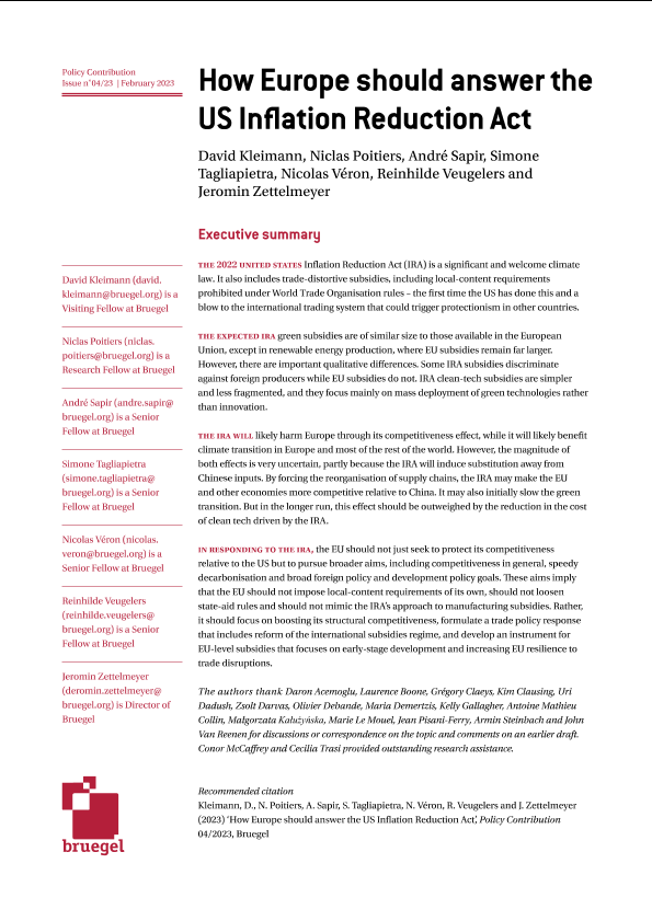 【布鲁盖尔研究所】【202302】欧洲应该如何应对美国的《通胀削减法案》-26页