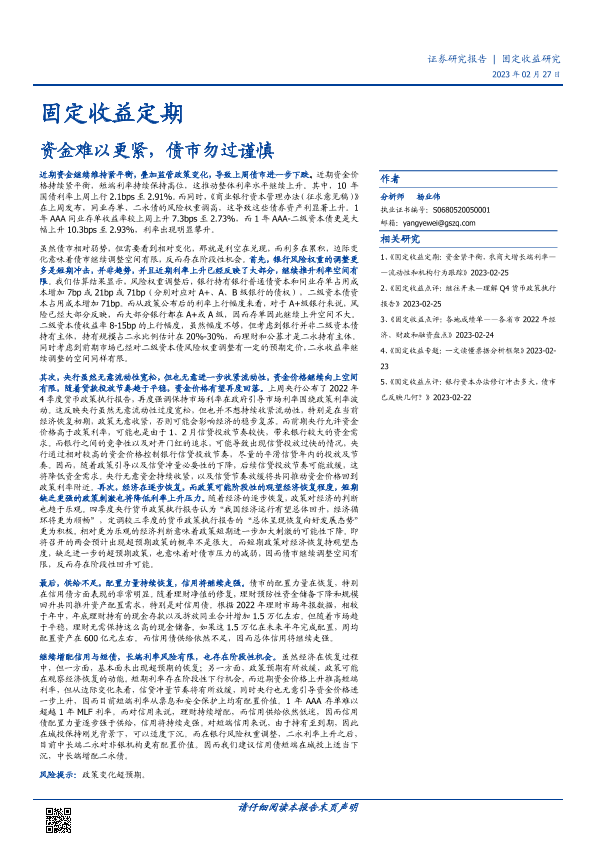 【国盛证券】【20230227】固定收益定期:资金难以更紧,债市勿过谨慎-16页