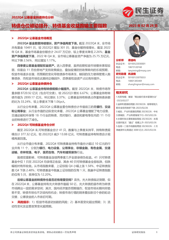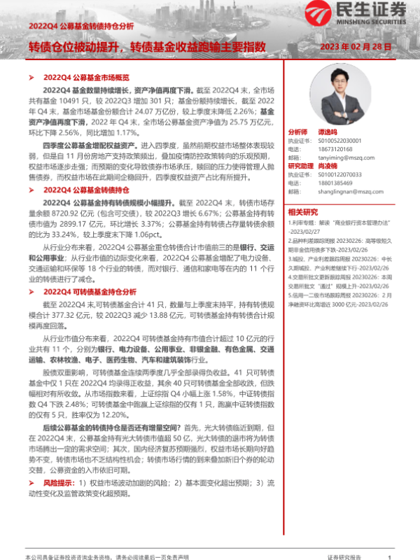 【民生证券】【20230228】2022Q4公募基金转债持仓分析:转债仓位被动提升,转债基金收益跑输主要指数-19页