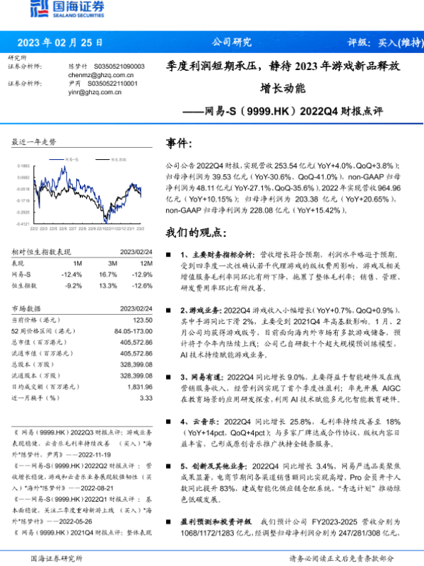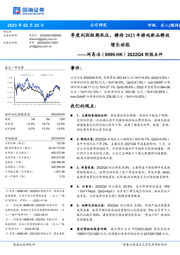 【国海证券】【20230225】2022Q4财报点评:季度利润短期承压,静待2023年游戏新品释放增长动能-15页