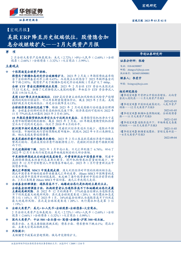 【华创证券】【20230302】2月大类资产月报:美股ERP降至历史极端低位,股债隐含加息分歧继续扩大-24页