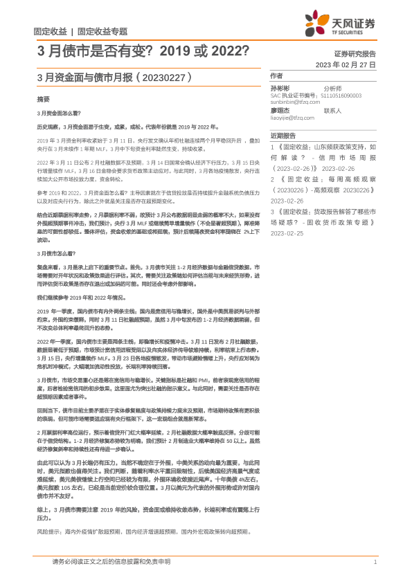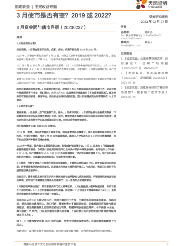 【天风证券】【20230227】3月资金面与债市月报:3月债市是否有变?2019或2022?-21页