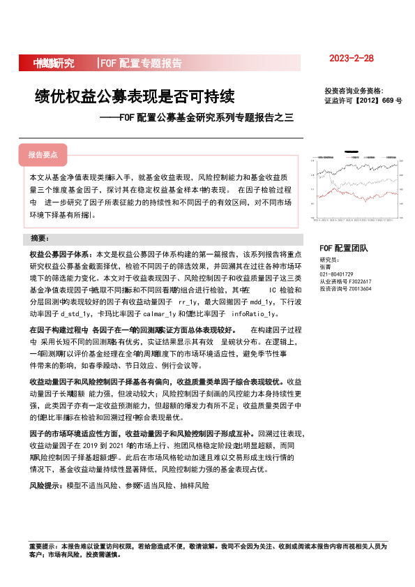 【中信期货】【20230228】FOF配置公募基金研究系列专题报告之三:绩优权益公募表现是否可持续-19页
