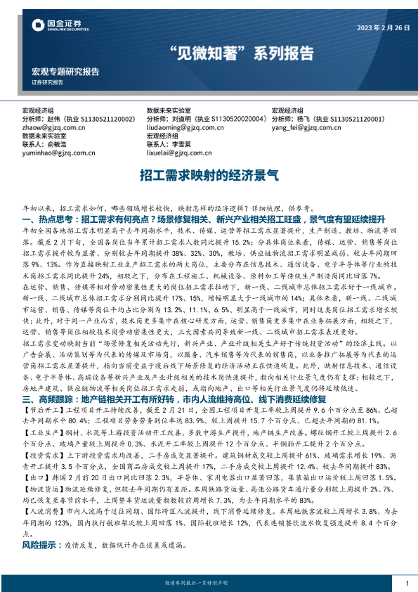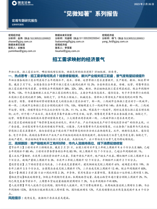【国金证券】【20230226】“见微知著”系列报告:招工需求映射的经济景气-16页