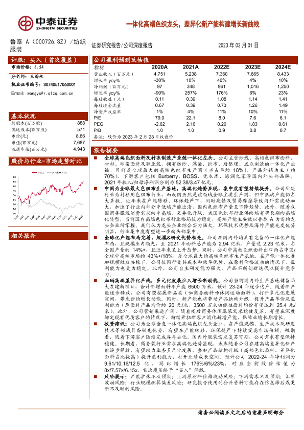 【中泰证券】【20230301】一体化高端色织龙头,差异化新产能构建增长新曲线-23页