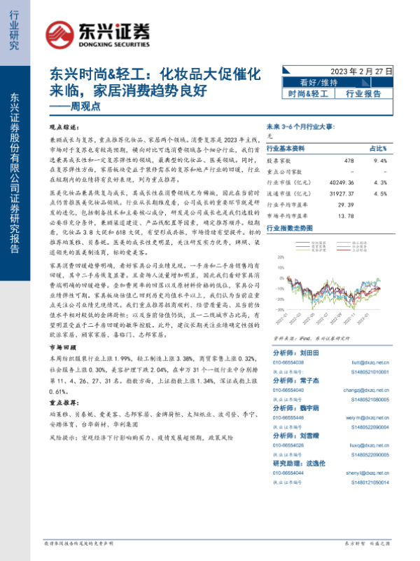【东兴证券】【20230227】东兴时尚&轻工周观点:化妆品大促催化来临,家居消费趋势良好-15页