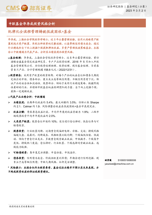 【海通证券】【20230302】中欧基金华李成投资风格分析:纪律化全流程管理铸就低波固收+基金-20页