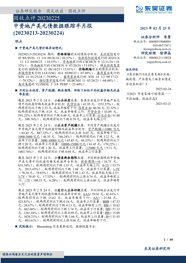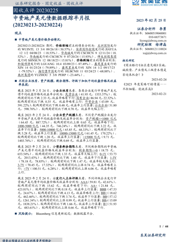 【东吴证券】【20230225】中资地产美元债数据跟踪半月报-44页