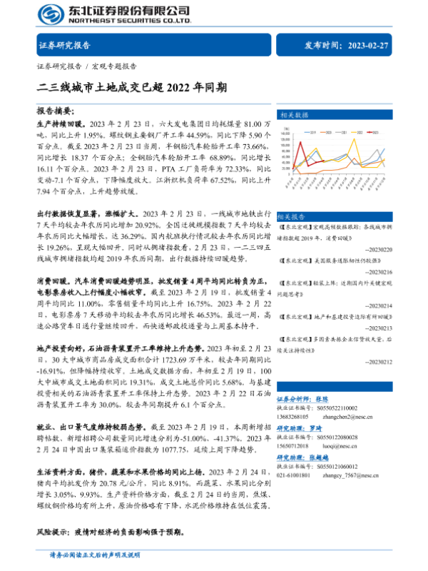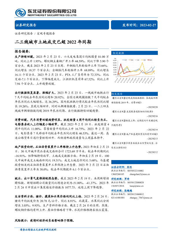 出行数据 土地市场 工业生产 消费数据 宏观经济