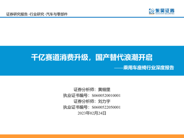 【东吴证券】【20230224】乘用车座椅行业深度报告:千亿赛道消费升级,国产替代浪潮开启-55页