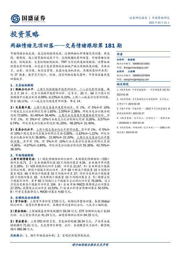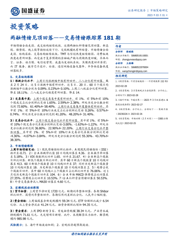【国盛证券】【20230301】交易情绪跟踪第181期:两融情绪见顶回落-16页