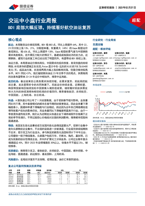 【国信证券】【20230227】交运中小盘行业周报:BDI底部大幅反弹,持续看好航空油运复苏-16页