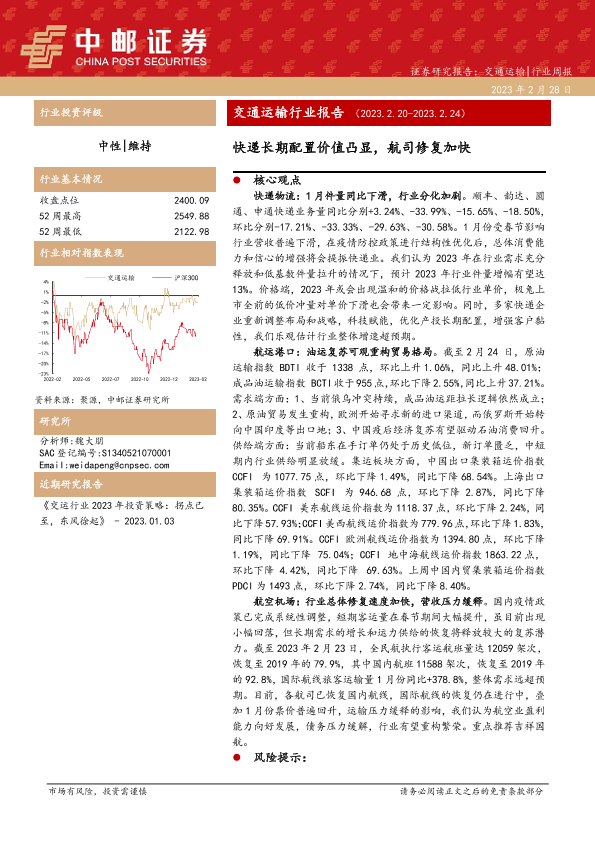 【中邮证券】【20230228】交通运输行业报告:快递长期配置价值凸显,航司修复加快-19页