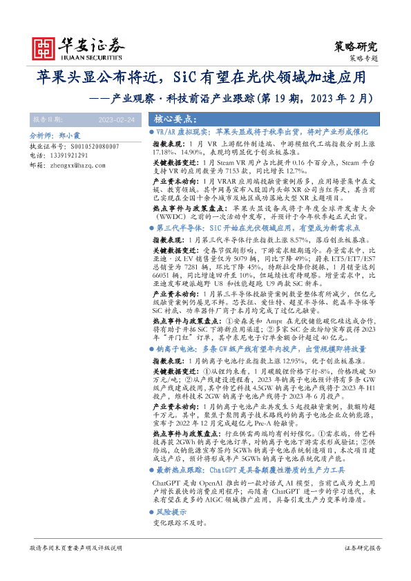 【华安证券】【20230224】产业观察·科技前沿产业跟踪(第19期,2023年2月):苹果头显公布将近,SiC有望在光伏领域加速应用-24页