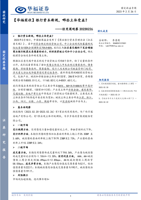 【华福证券】【20230226】信用周观察:银行资本新规,哪些主体受益?-21页