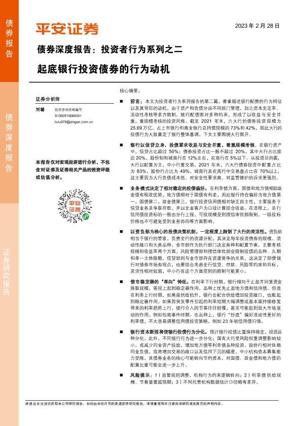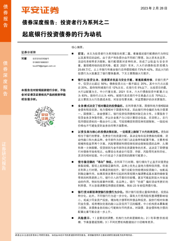 【平安证券】【20230228】债券深度报告:投资者行为系列之二,起底银行投资债券的行为动机-16页