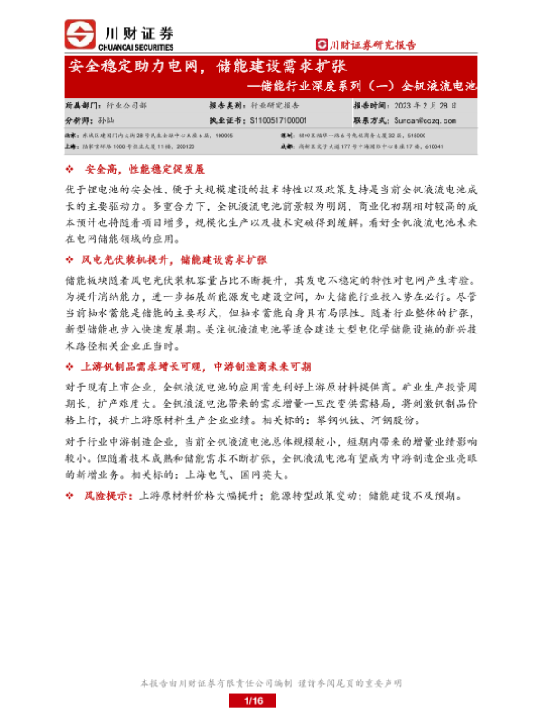 【川财证券】【20230228】储能行业深度系列(一)全钒液流电池-安全稳定助力电网-储能建设需求扩张-16页