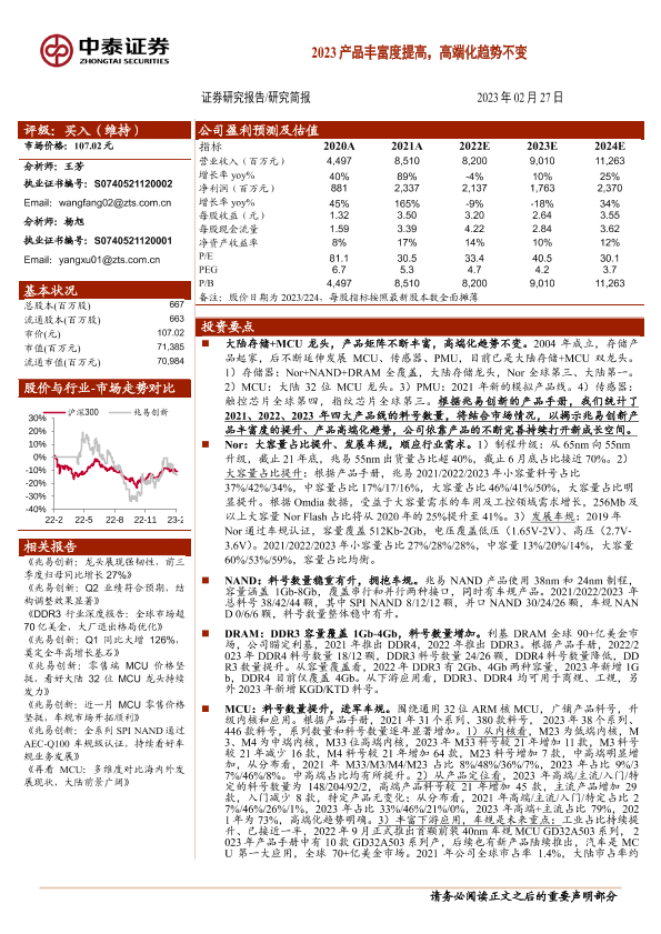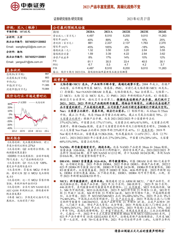 【中泰证券】【20230227】兆易创新(603986)2023产品丰富度提高,高端化趋势不变-27页
