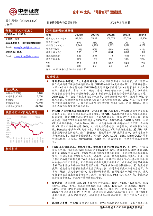 【中泰证券】【20230228】全球XR龙头,“零整协同”涅槃重生-34页