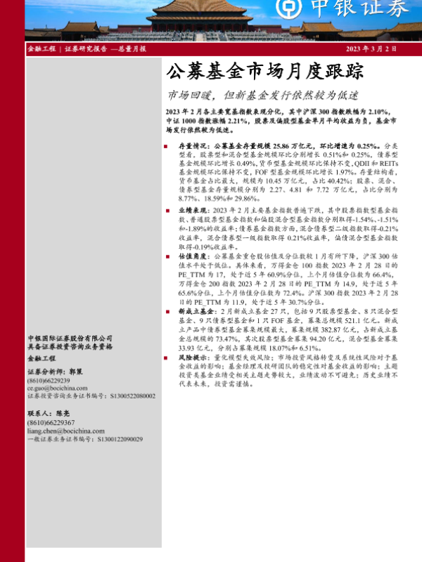 【中银证券】【20230302】公募基金市场月度跟踪:市场回暖,但新基金发行依然较为低迷-17页