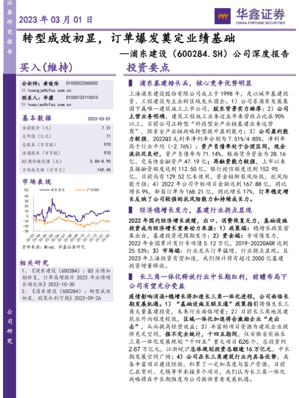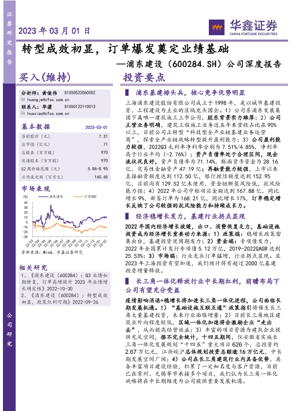 基建行业 浦东建设 财务分析 转型战略 长三角一体化