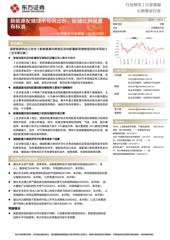 【东方证券】【20230228】公用事业行业周报:新能源配储技术导则出台,配储比例设置有标准-15页