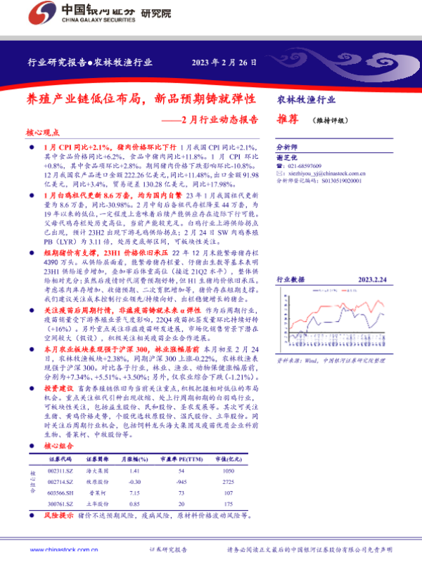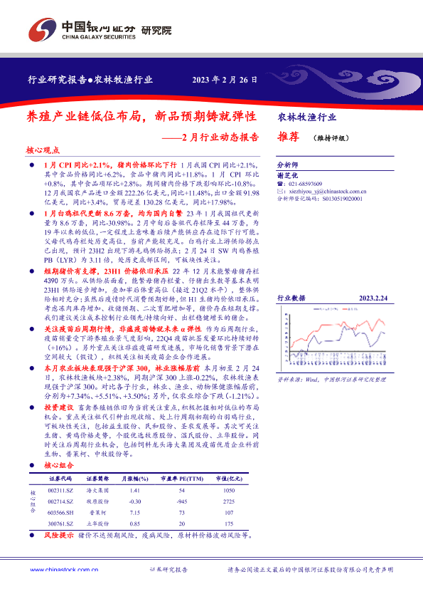 【银河证券】【20230226】农林牧渔行业2月行业动态报告:养殖产业链低位布局,新品预期铸就弹性-22页