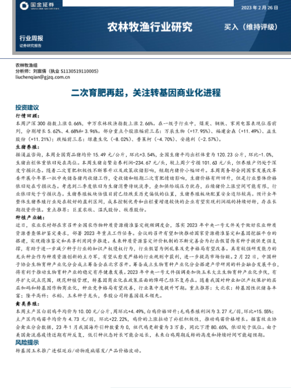 【国金证券】【20230226】农林牧渔行业周报:二次育肥再起,关注转基因商业化进程-15页