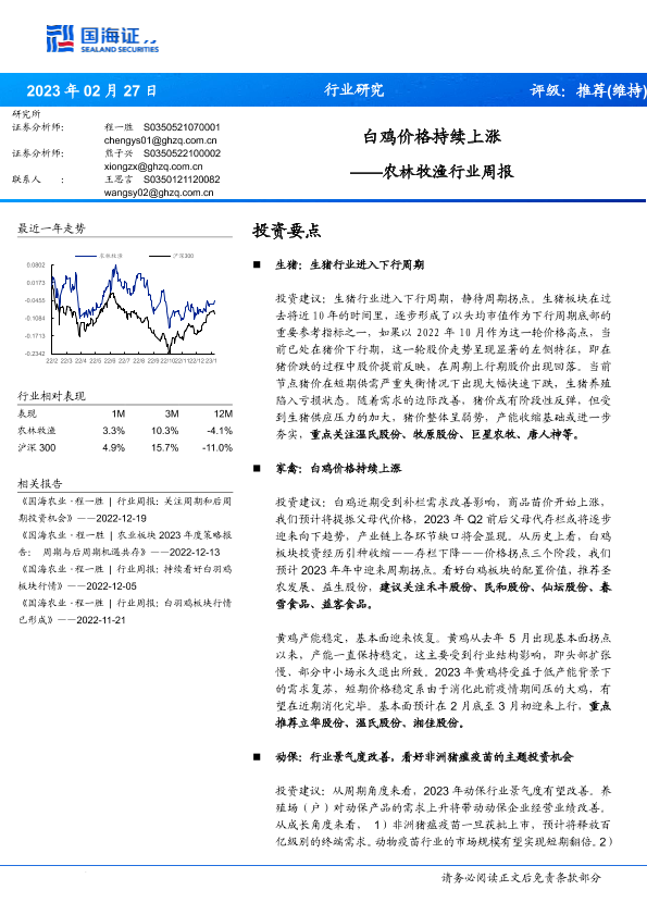 【国海证券】【20230227】农林牧渔行业周报:白鸡价格持续上涨-20页