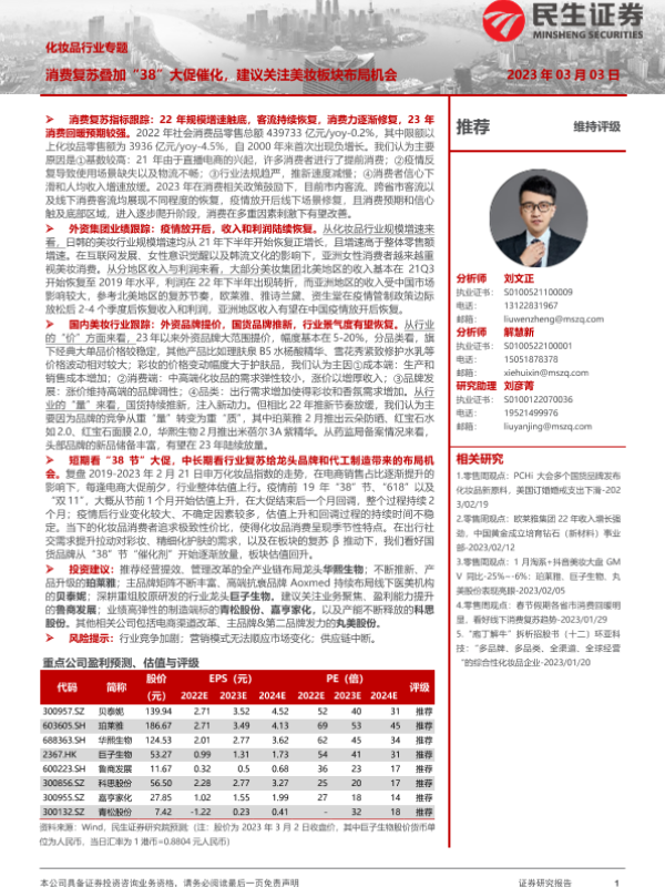 【民生证券】【20230303】化妆品行业专题:消费复苏叠加“38”大促催化,建议关注美妆板块布局机会-35页