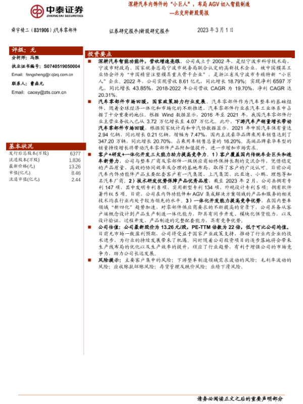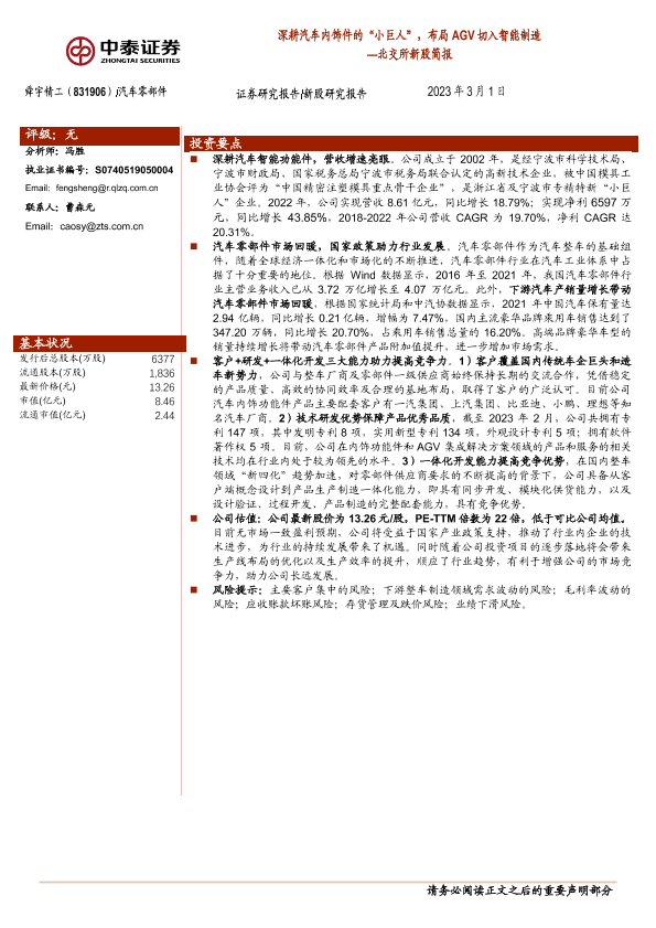 【中泰证券】【20230301】北交所新股简报:深耕汽车内饰件的“小巨人”,布局AGV切入智能制造-21页