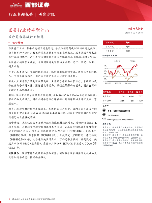 【西部证券】【20230226】医疗美容器械行业概览:医美行业的半壁江山-20页