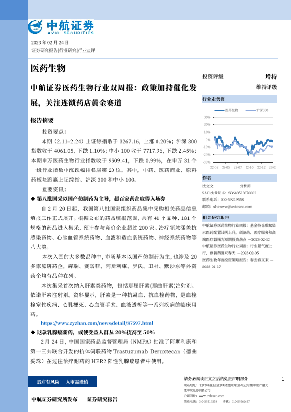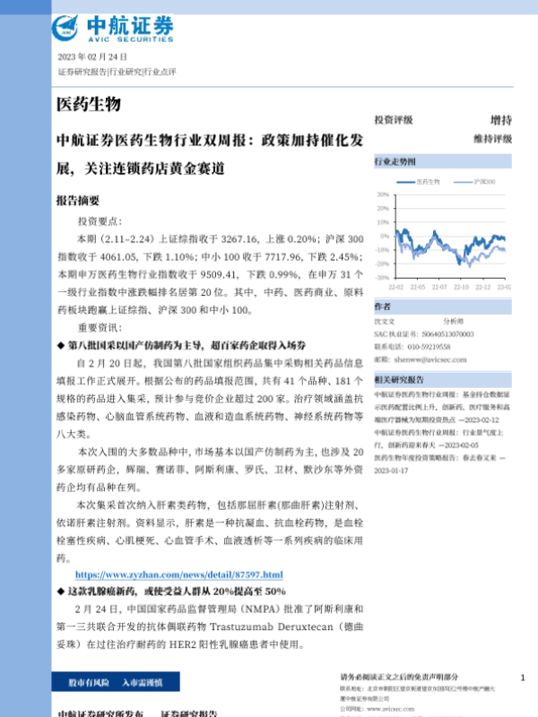 【中航证券】【20230224】医药生物行业双周报:政策加持催化发展,关注连锁药店黄金赛道-28页