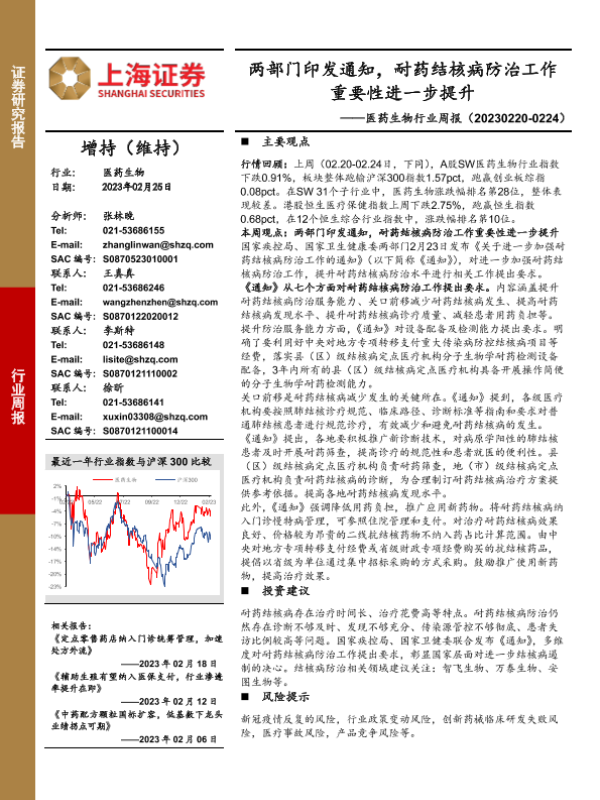 【上海证券】【20230225】医药生物行业周报:两部门印发通知,耐药结核病防治工作重要性进一步提升-22页