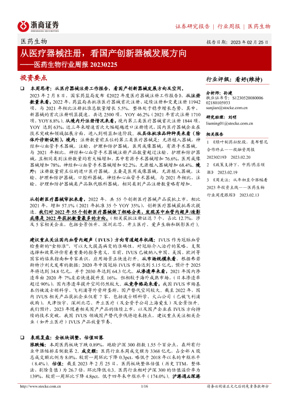 【浙商证券】【20230225】医药生物行业周报:从医疗器械注册,看国产创新器械发展方向-16页