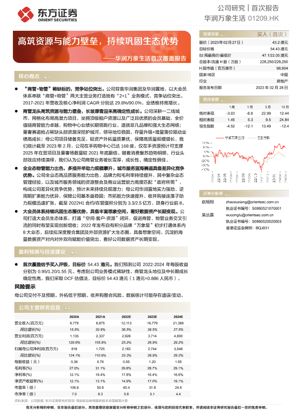 【东方证券】【20230228】华润万象生活首次覆盖报告:高筑资源与能力壁垒,持续巩固生态优势-40页