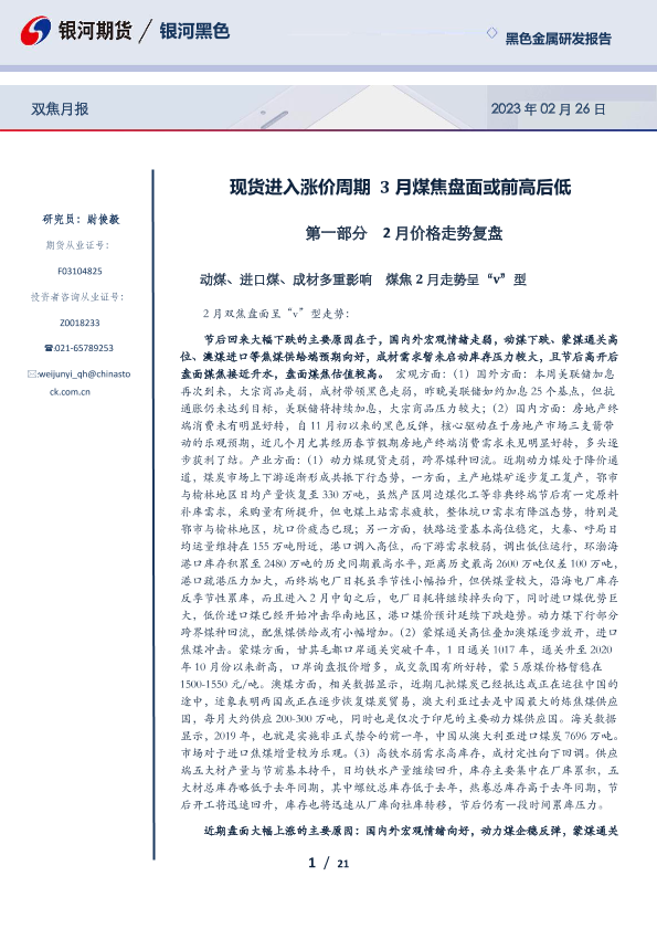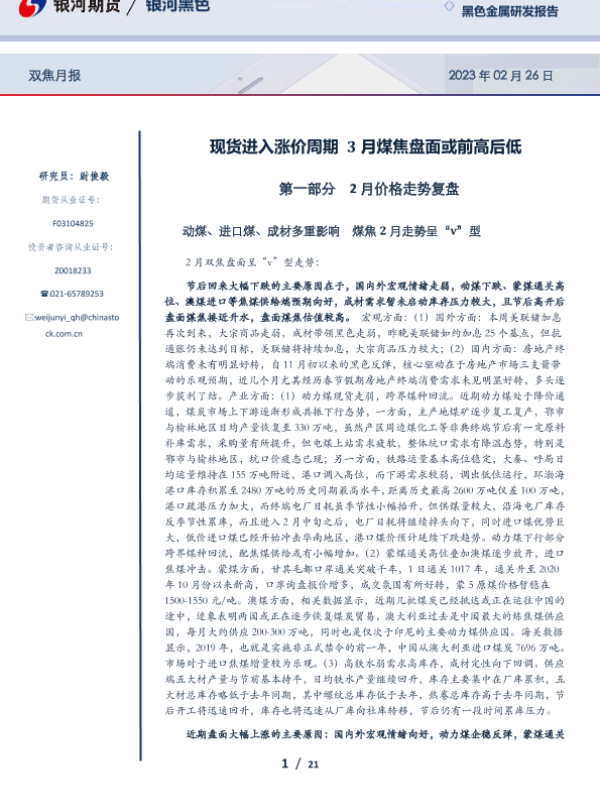 【银河期货】【20230226】双焦月报:现货进入涨价周期,3月煤焦盘面或前高后低-21页