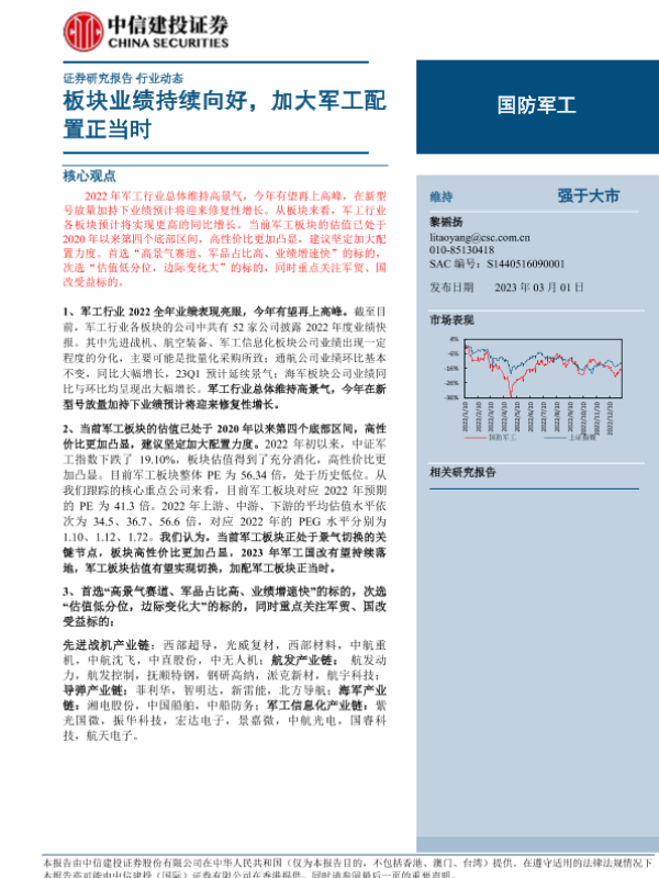 业绩表现 估值分析 军工行业 投资策略 板块配置