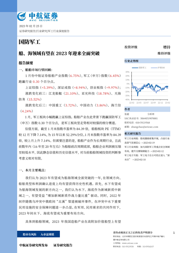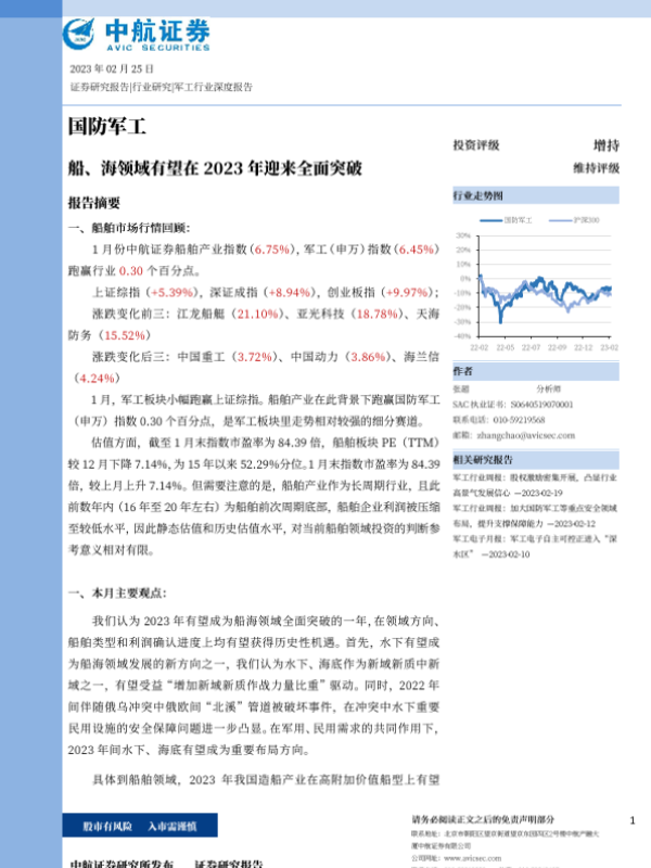 【中航证券】【20230225】国防军工行业:船、海领域有望在2023年迎来全面突破-21页