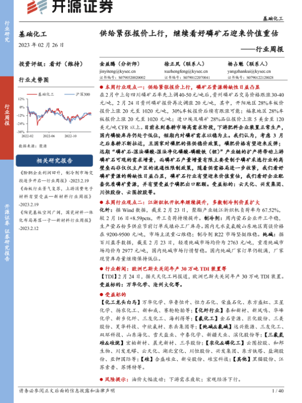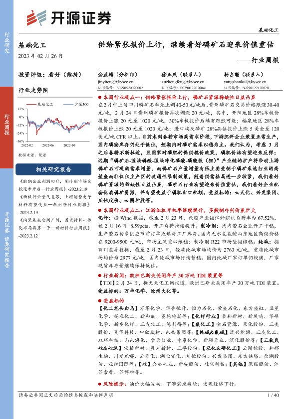 【开源证券】【20230226】基础化工行业周报:供给紧张报价上行,继续看好磷矿石迎来价值重估-40页