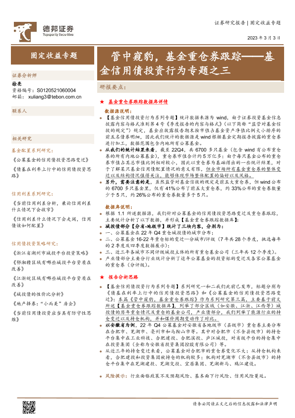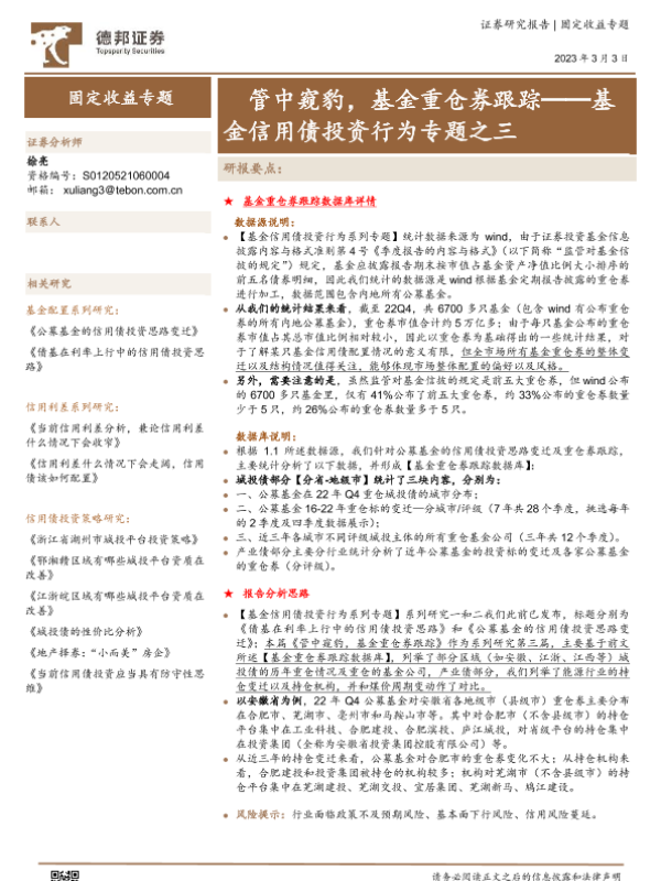 【德邦证券】【20230303】基金信用债投资行为专题之三:管中窥豹,基金重仓券跟踪-16页