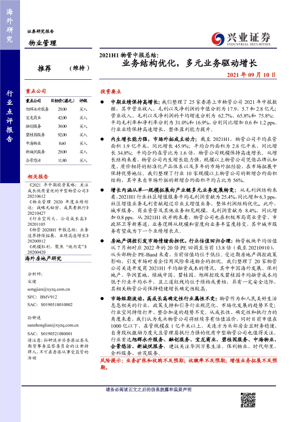 【兴业证券】【20210910】2021H1物管中报总结:业务结构优化,多元业务驱动增长-22页