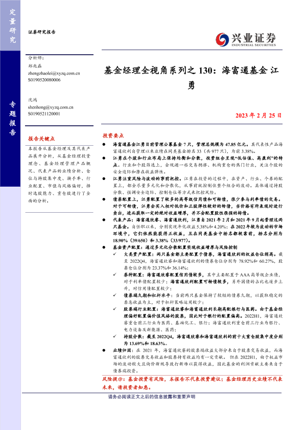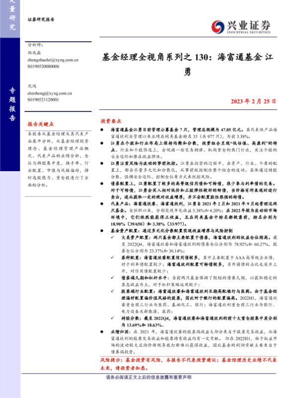【兴业证券】【20230225】基金经理全视角系列之 130:海富通基金江勇-18页