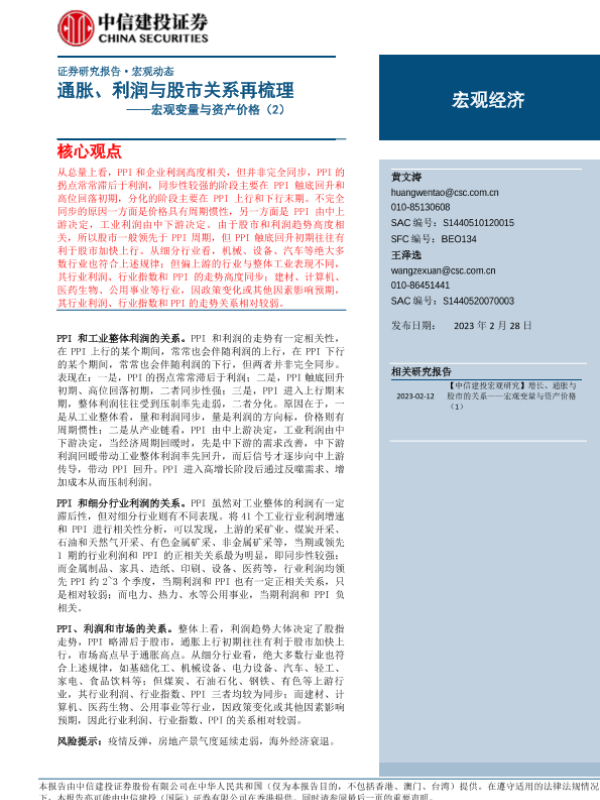 【中信建投证券】【20230228】宏观变量与资产价格(2):通胀、利润与股市关系再梳理-17页
