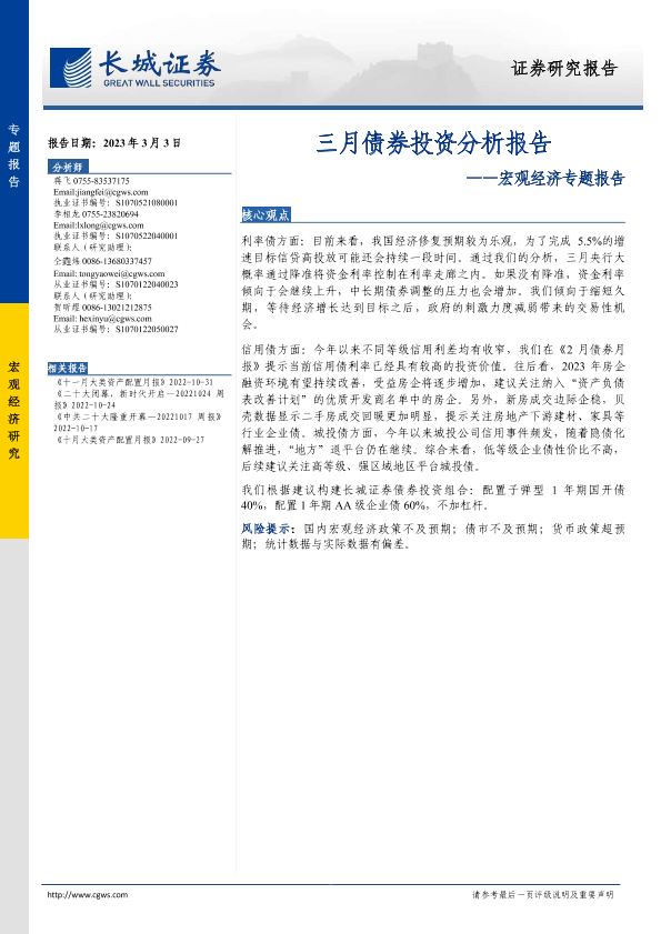 【长城证券】【20230303】三月债券投资分析报告-19页