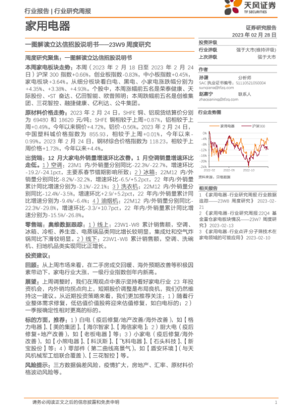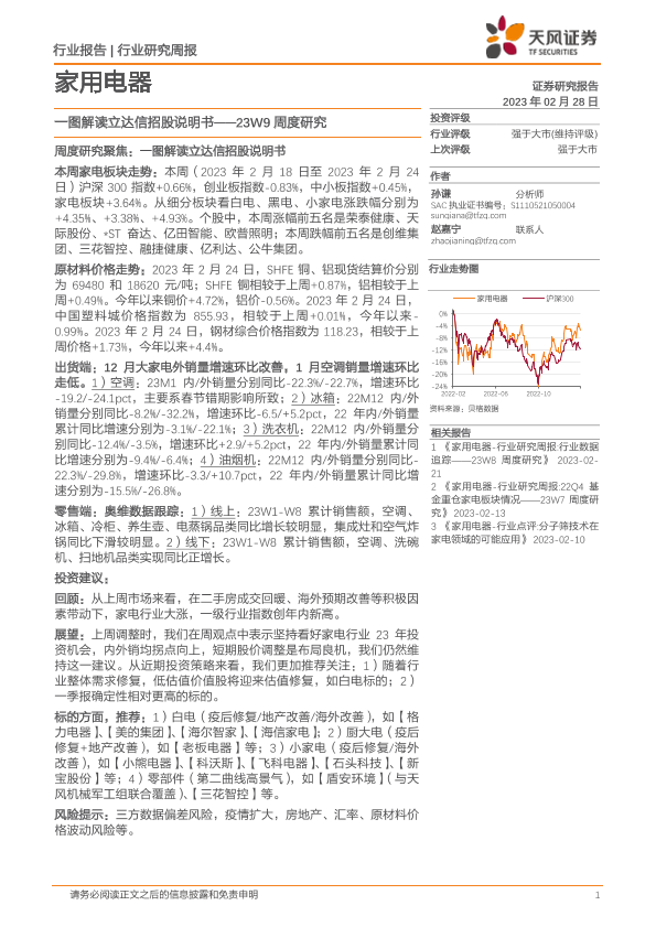 周度研究 家电行业 市场分析 投资建议 招股说明书解读