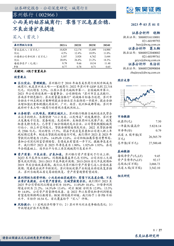 【东吴证券】【20230301】小而美的姑苏城商行:零售下沉息差企稳,不良出清扩表提速-27页